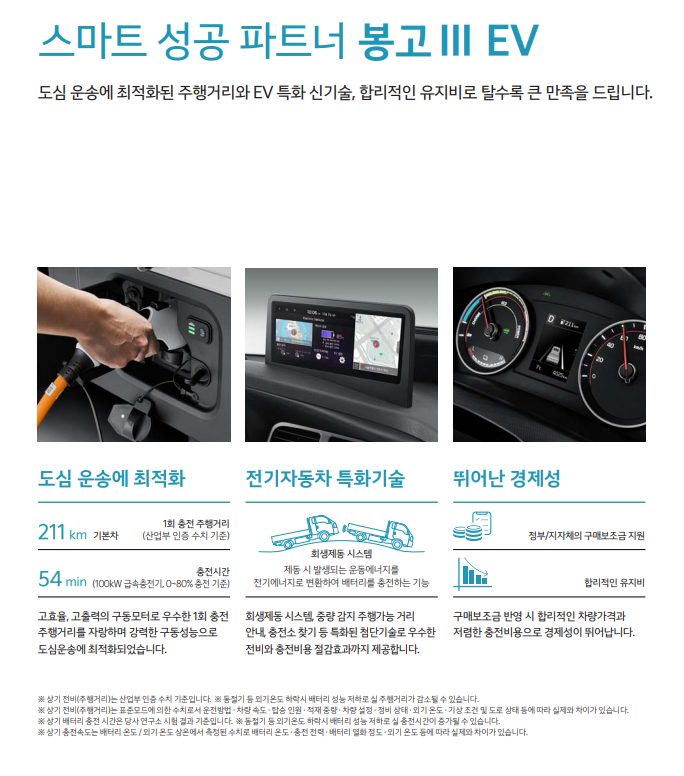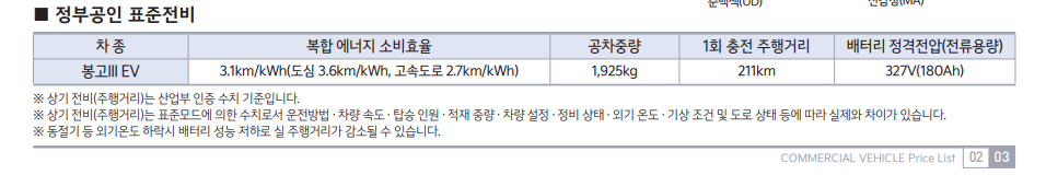 봉고 전기차 정부공인 표준 전비는 3.1km/kWh로