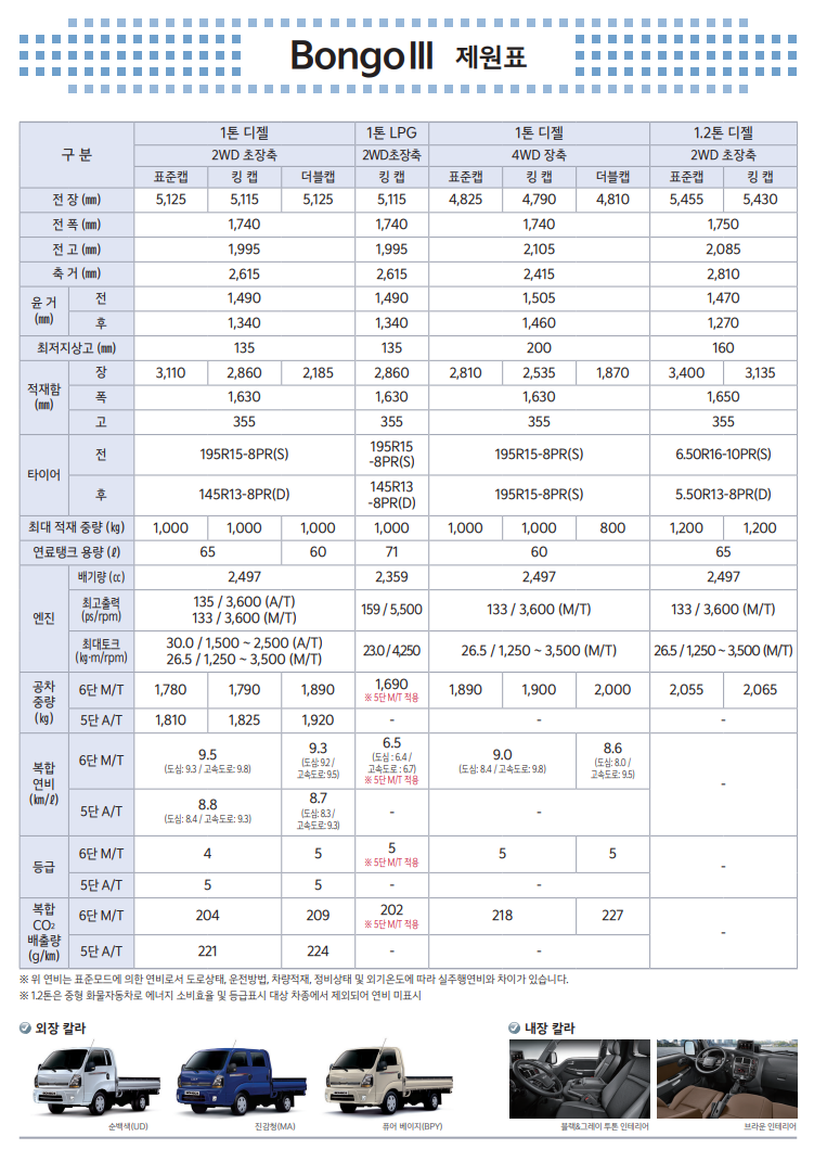 모든 봉고 모델들은 초장축으로만 리스 판매가 가능합니다.