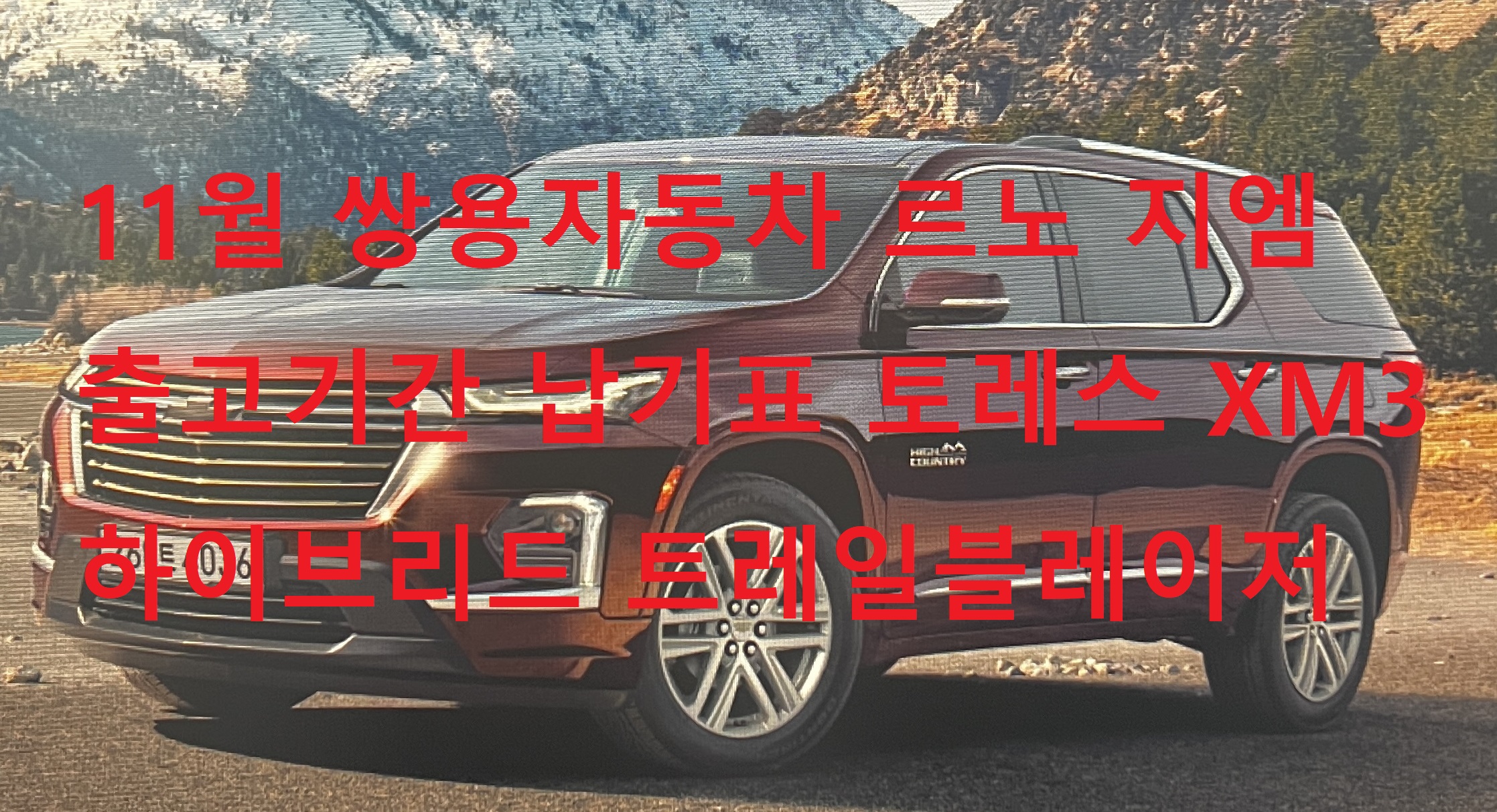 오늘은 쌍용자동차 지엠 르노 출고기간 납기표를 알아보고자 합니다.