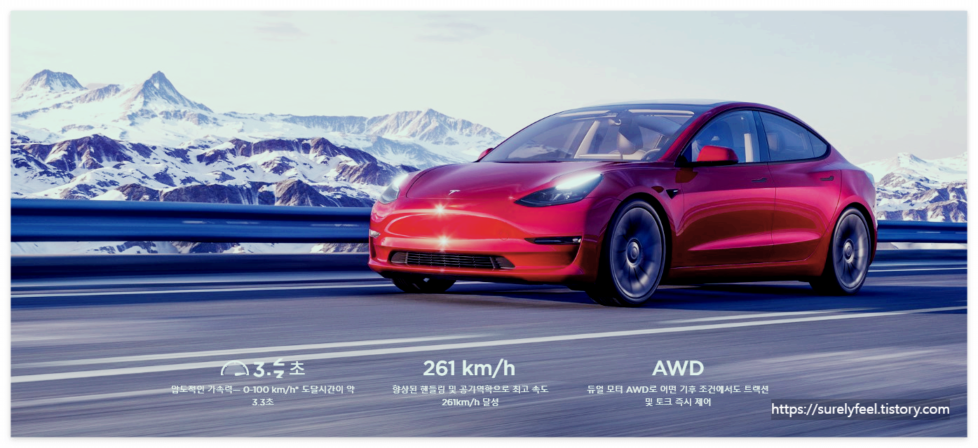 테슬라 모델3 롱레인지도 3.3초로 정말 빠르고