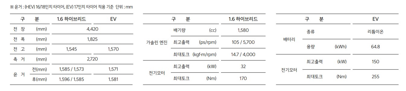 하이브리드 모델도 그렇고 전기차도 가성비가 좋은 편에 속하는 차량입니다.