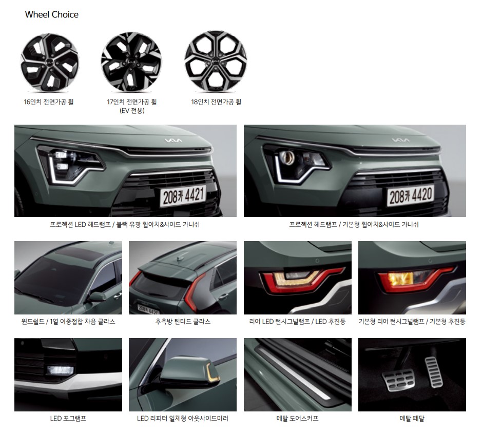 하이브리드 기본트림인 경우엔 16인치 휠을 장착하지만 니로 EV 모델은 17인치가 디폴트 값입니다.