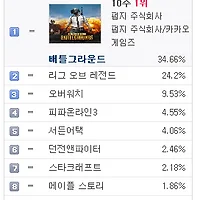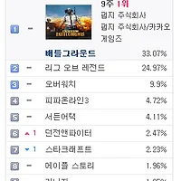 PC방 게임 순위 - 2018년 1월 23일 기준
